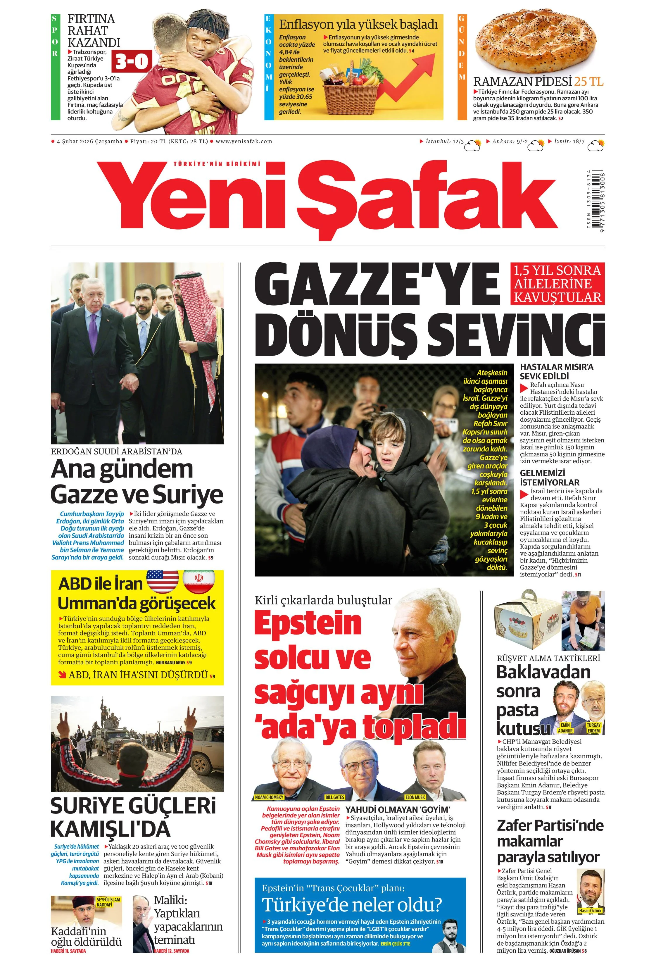 Bu günkü "Yeni Şafak" gazetesi